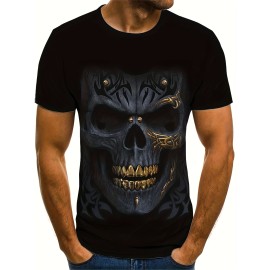 Men's Scary Skull Head 3D Print T-shirt with Golden Teeth - Trendy Graphic Summer Outdoor Tee