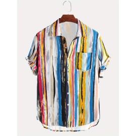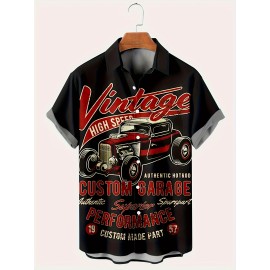 Men's Shirt Top, Solid Lace Hollow Out Design Lapel Short Sleeve Closure Summer Sexy Casual Button Up Shirt For Men Daily, Coquette Style