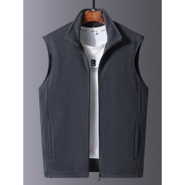 Zipper Pockets Cargo Vest, Men's Casual Outwear Stand Collar Zip Up Vest For Spring Summer Outdoor Fishing Photography