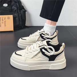 Men's Trendy Platform Shoes Lace Up High Top Non Slip Comfy Sneakers For Outdoor Casual Activities Walking Hiking, All Seasons