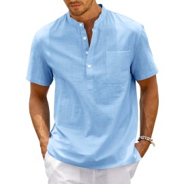 Men's Vertical Striped Short Sleeve Button Up Shirt - Casual Summer Vacation Top