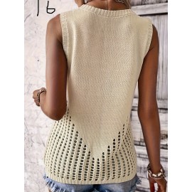 Plus Size Soft Cable Knit Tank Top - Comfortable Sleeveless V Neck for Curvy Women - Versatile Solid Color, Perfect for Spring & Summer Wardrobe