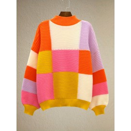 Women's Elegant Sweater, Plus Size Solid Long Sleeve Turtleneck Drop Shoulder Jumper